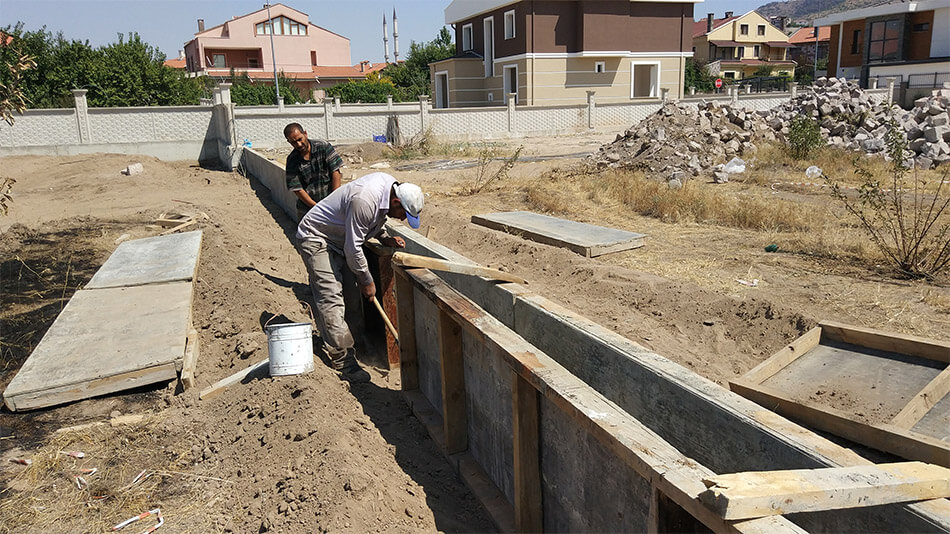 - Kuruyan kalıpların söküm işini yapıp kalite kontrol işleminin ardından yapımını tamamladığımız desenli bahçe duvarını teslim ederiz.